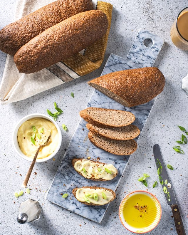 Paine cu fibre alimentare din faina neagra de grau, graham si tarate.